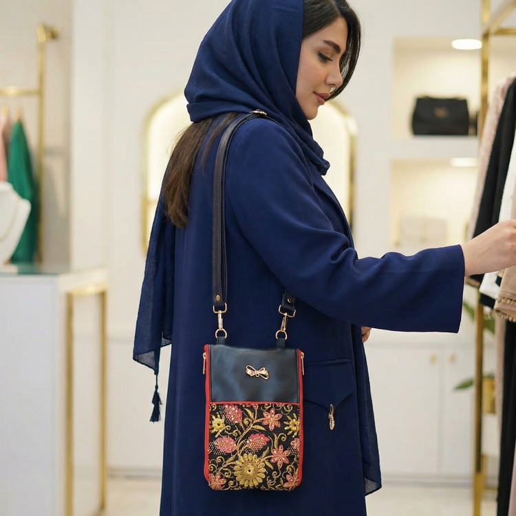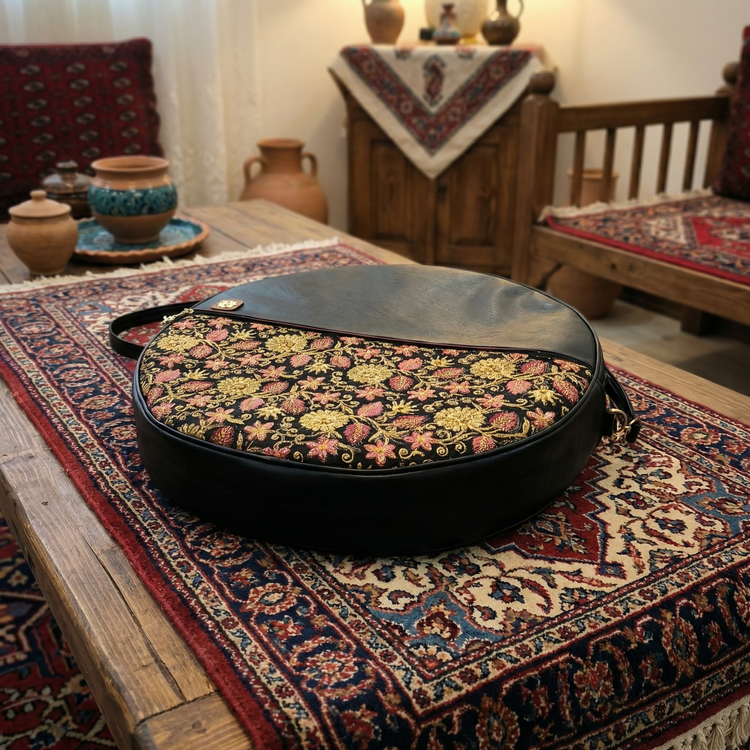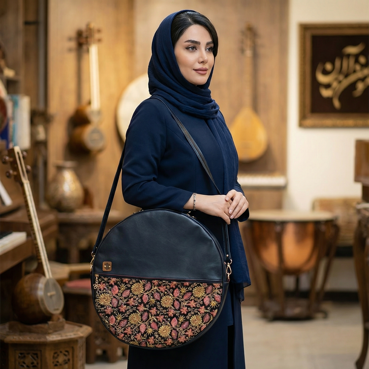 کاور دف لاکچری اعلا با چرم صنعتی سورمه ای ترکیبی با پارچه مجلسی همراه با کیف مبایل بعنوان هدیه که عکسش موجوده