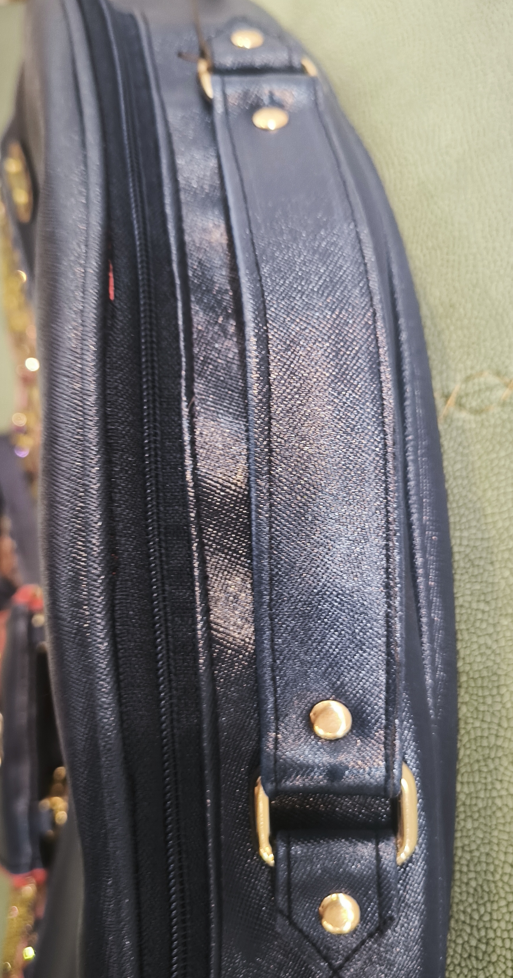 بند از جنس خود چرم و دسته ی کیف با یراق ضدآب و رنگ ثابت