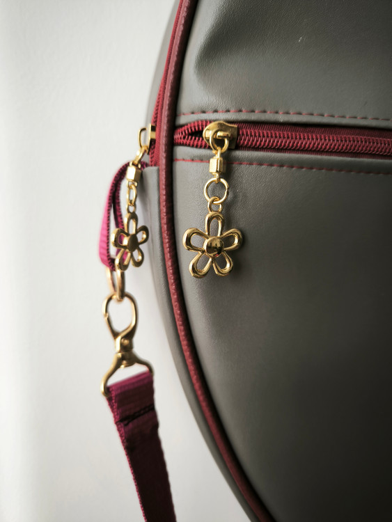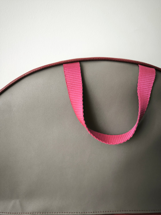 کاور دف چرم صنعتی طوسی شاین دار استر کشی تمیز فوم 8 یراق رنگ ثابت بند روی دوش و جیب جای کتاب کاملا ضد آب
