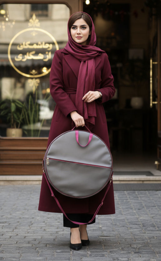 کاور دف چرم صنعتی طوسی شاین دار استر کشی تمیز فوم 8 یراق رنگ ثابت بند روی دوش و جیب جای کتاب کاملا ضد آب