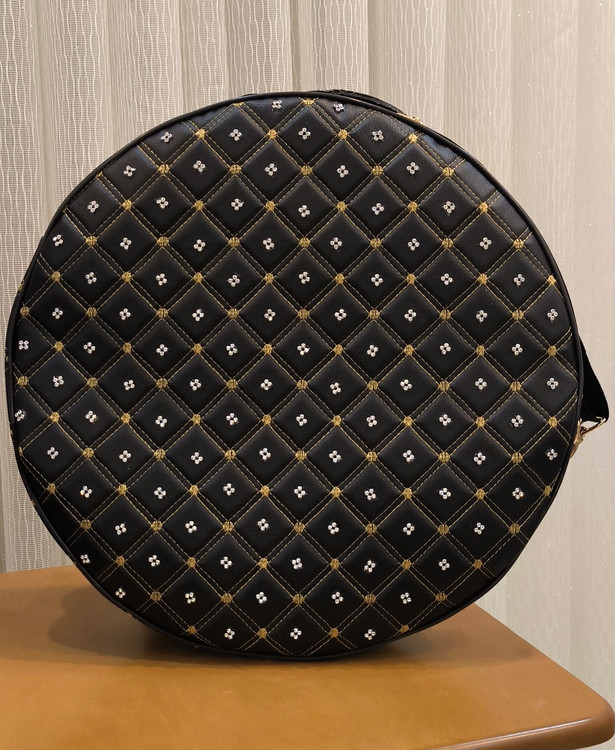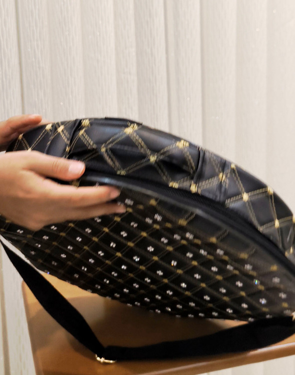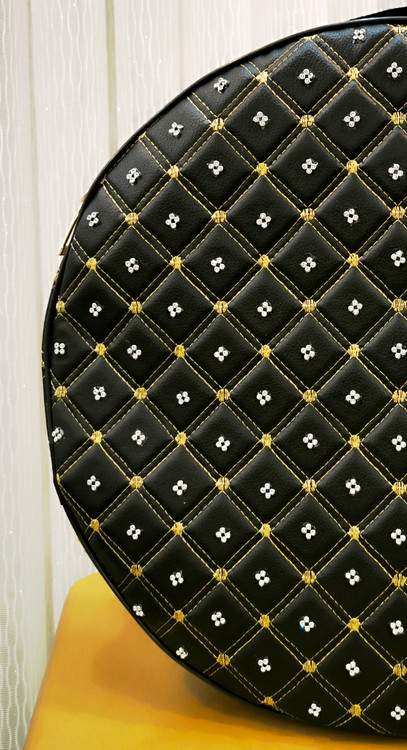 چرم صنعتی مطلسه دوزی شده ونگین کاری شده با دست استر کشی مناسب و بند روی دوش