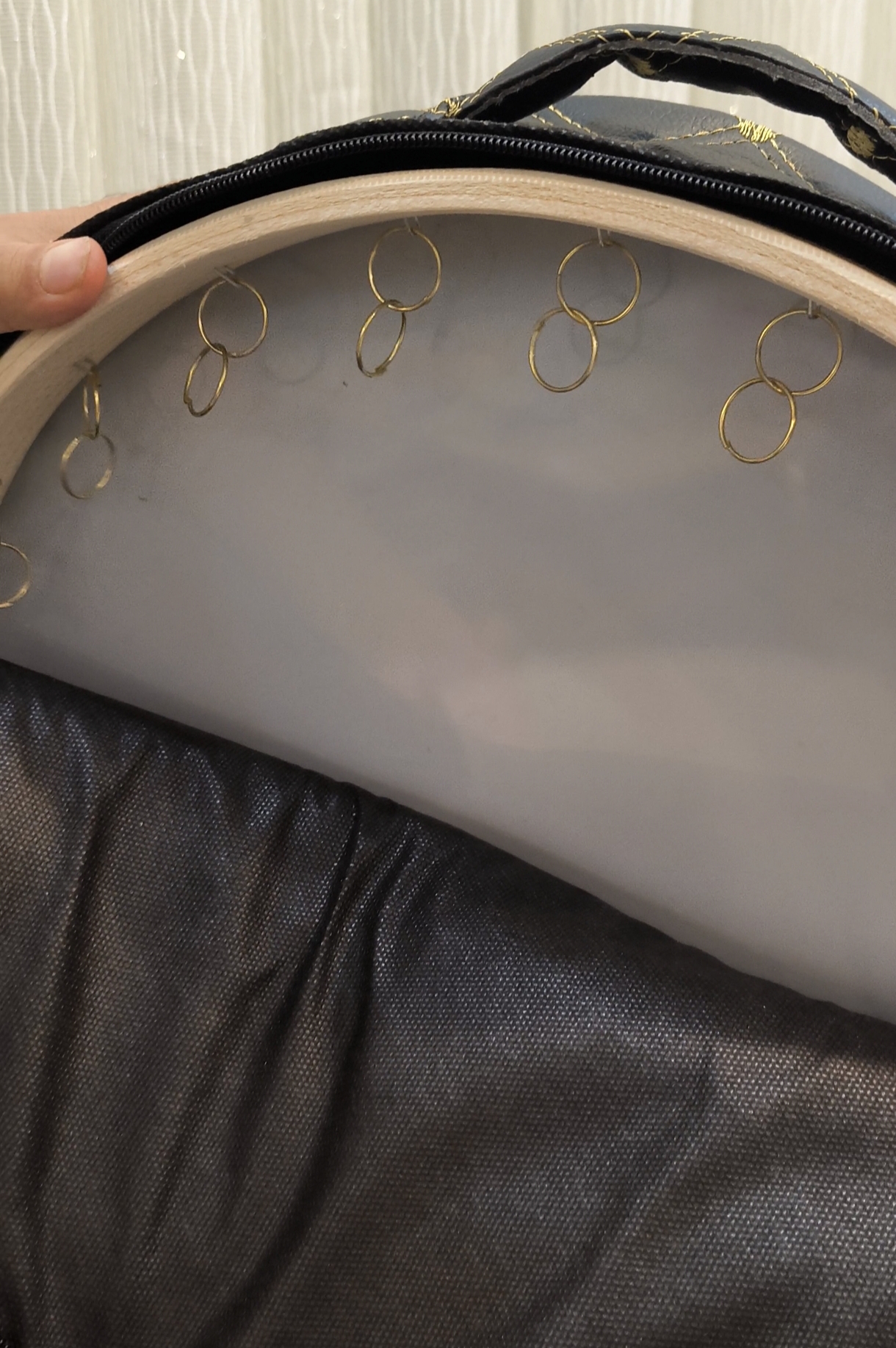 چرم صنعتی مطلسه دوزی شده ونگین کاری شده با دست استر کشی مناسب و بند روی دوش