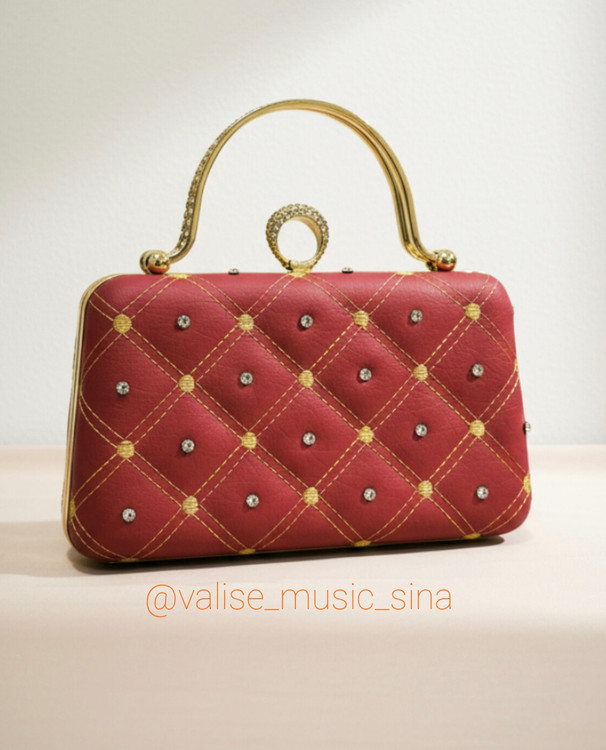 کیف زیبای مجلسی جنس چرم مصنوعی قاب دهانه فلزی رنگ ثابت و آستری اشبالت نگین کاری شده با دست