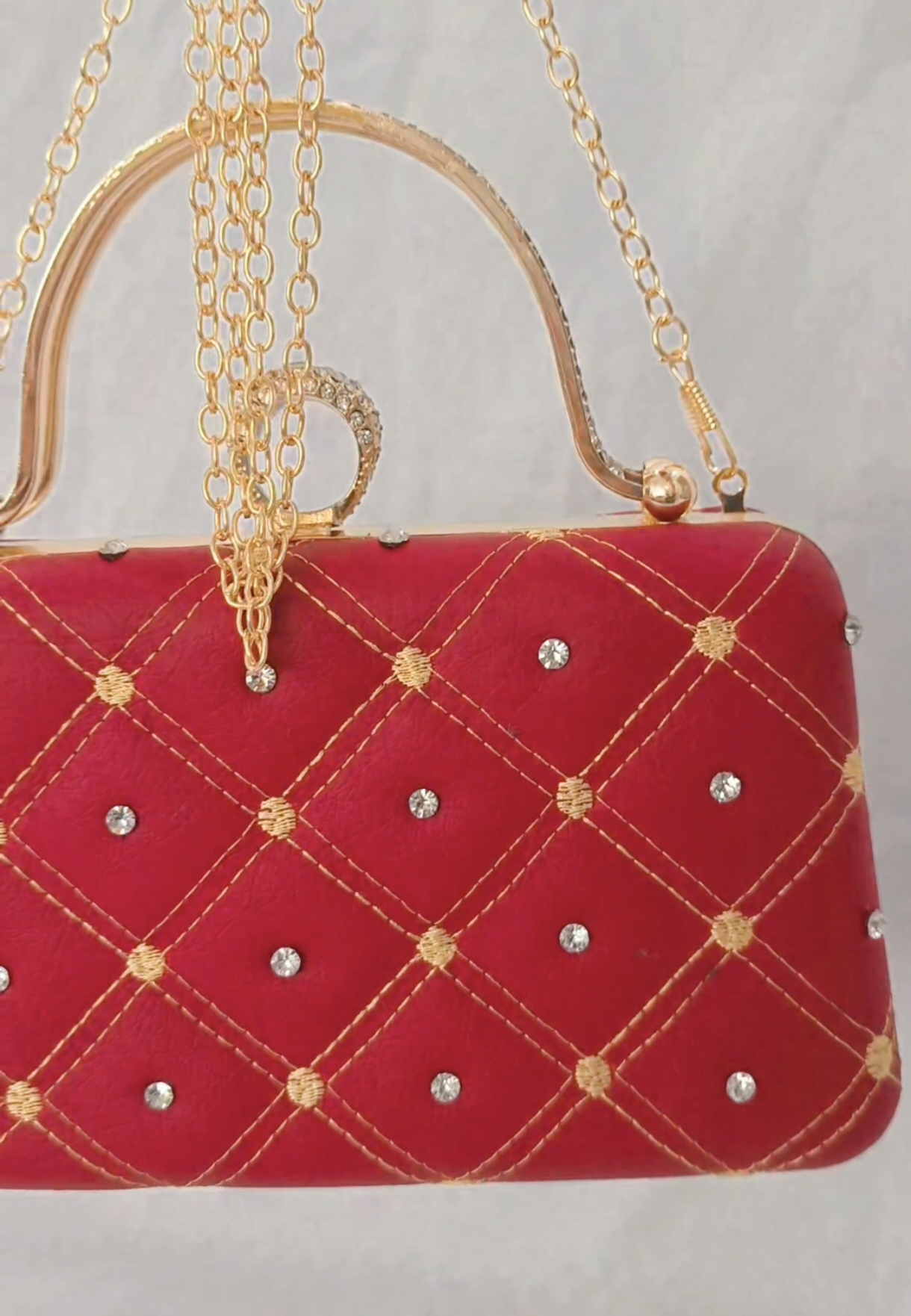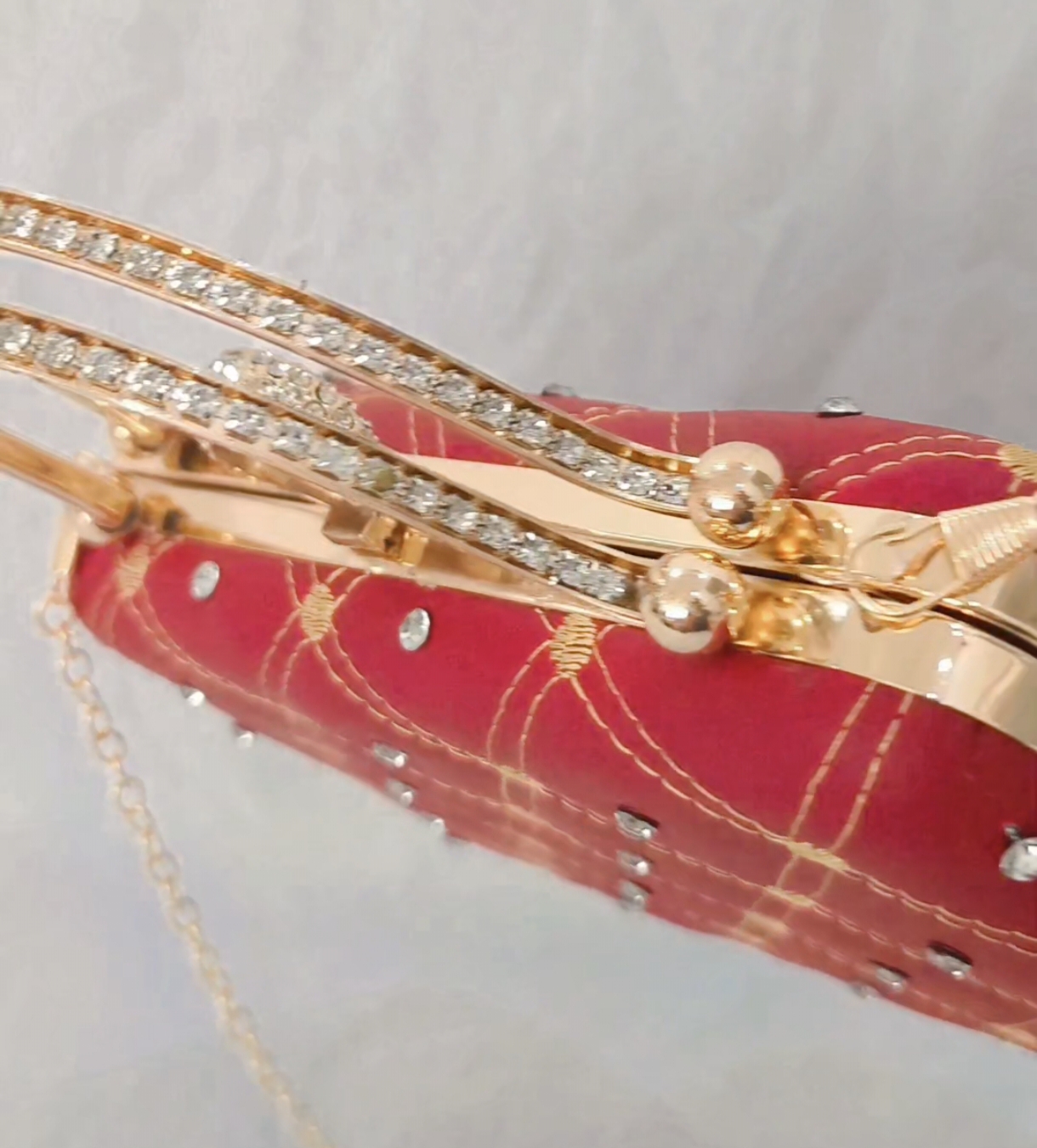کیف زیبای مجلسی جنس چرم مصنوعی قاب دهانه فلزی رنگ ثابت و آستری اشبالت نگین کاری شده با دست