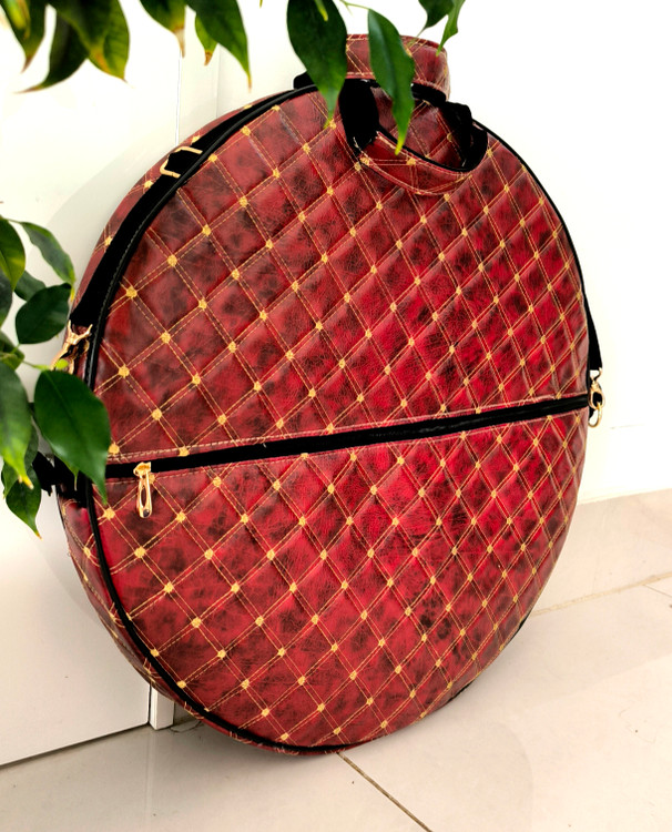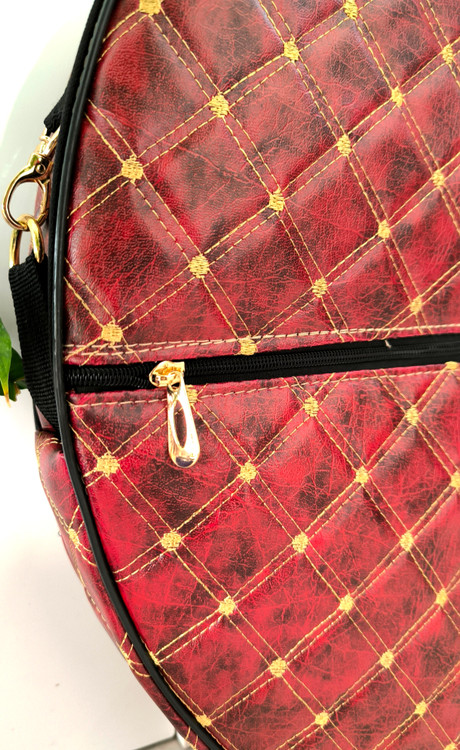 کیف دف جنس چرم صنعتی مطلسه دوزی شد و آستر کشی فوم 6 دارای بند روی دوش و دسته وجیب جلوی کیف