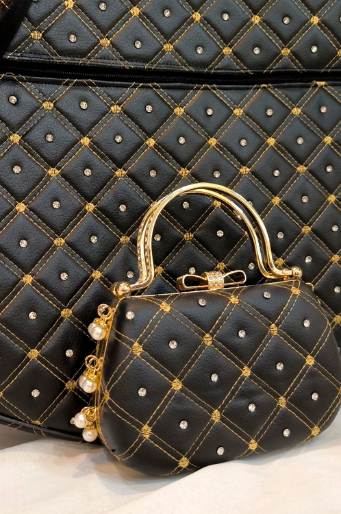 ست کیف چرمی مطلسه دوزی و نگین کاری شده مجلسی با دف زنانه سینا