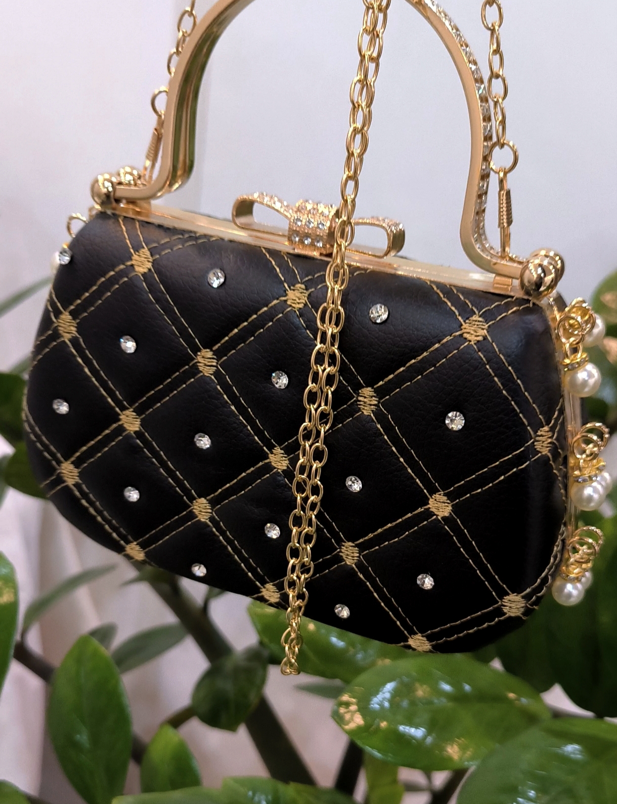 ست کیف چرمی مطلسه دوزی و نگین کاری شده مجلسی با دف زنانه سینا