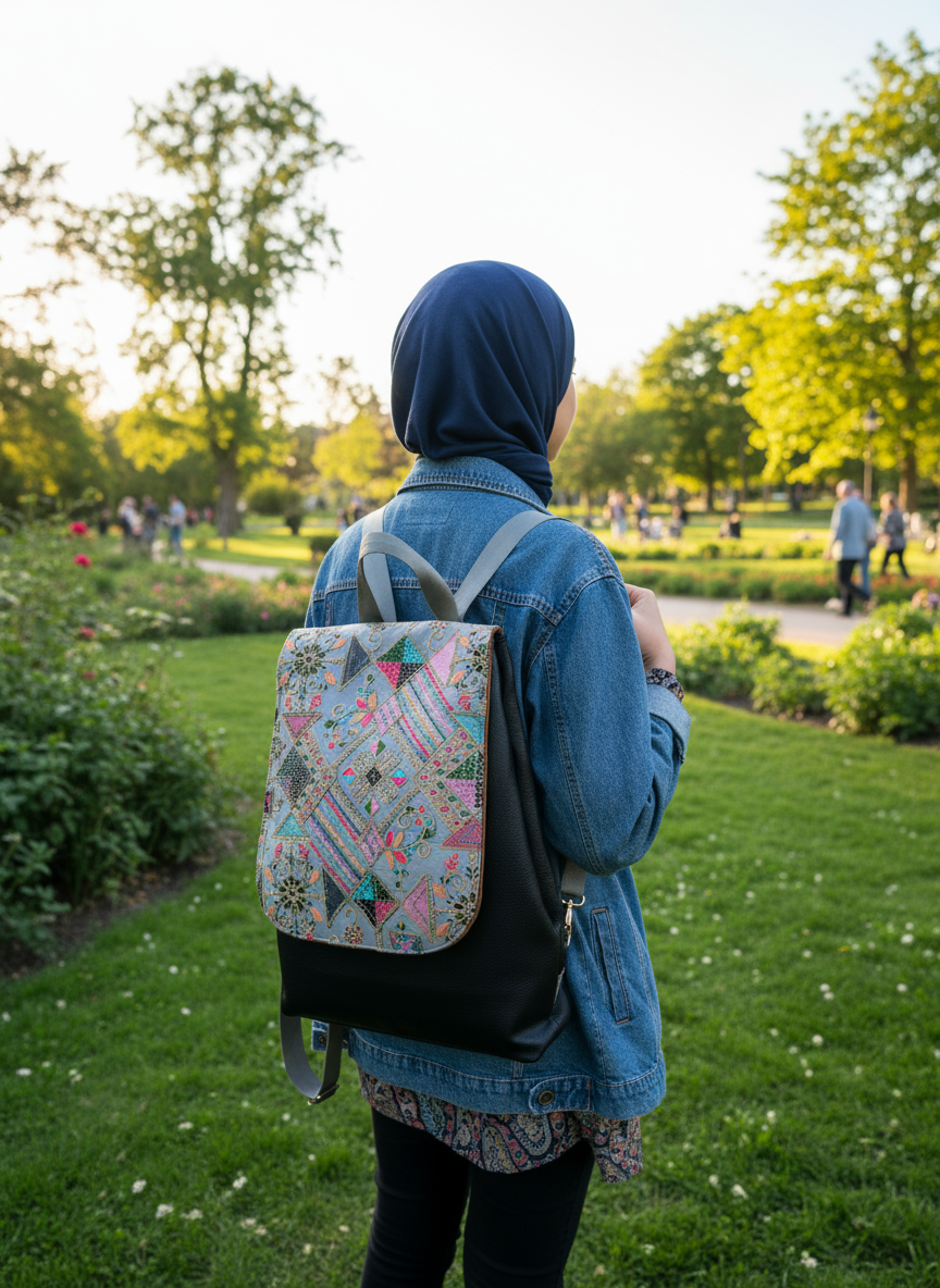 کوله پشتی چرم با پارچه ی کارشده مجلسی سینا