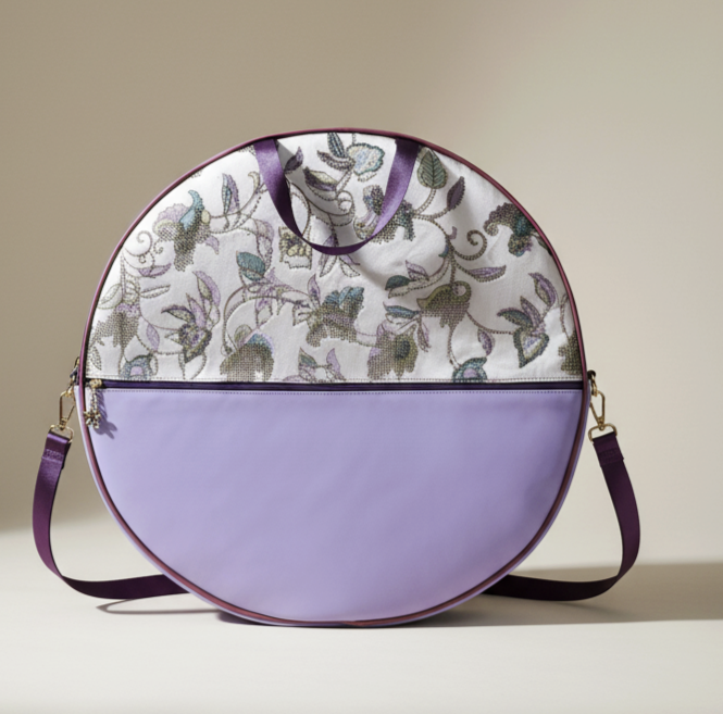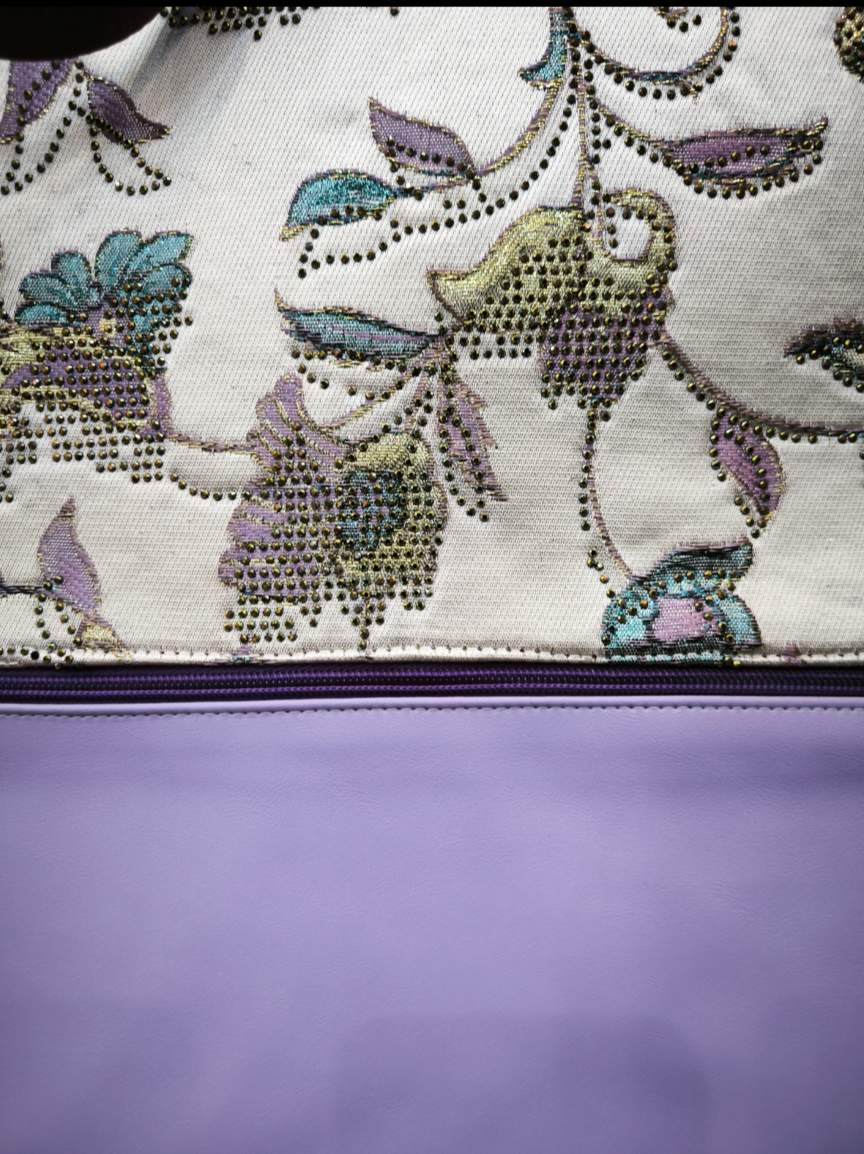 کیف دف چرم مصنوعی پشت جودن ساده بنفش ارکیده ترکیبی با پارچه مجلسی