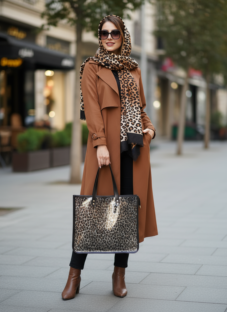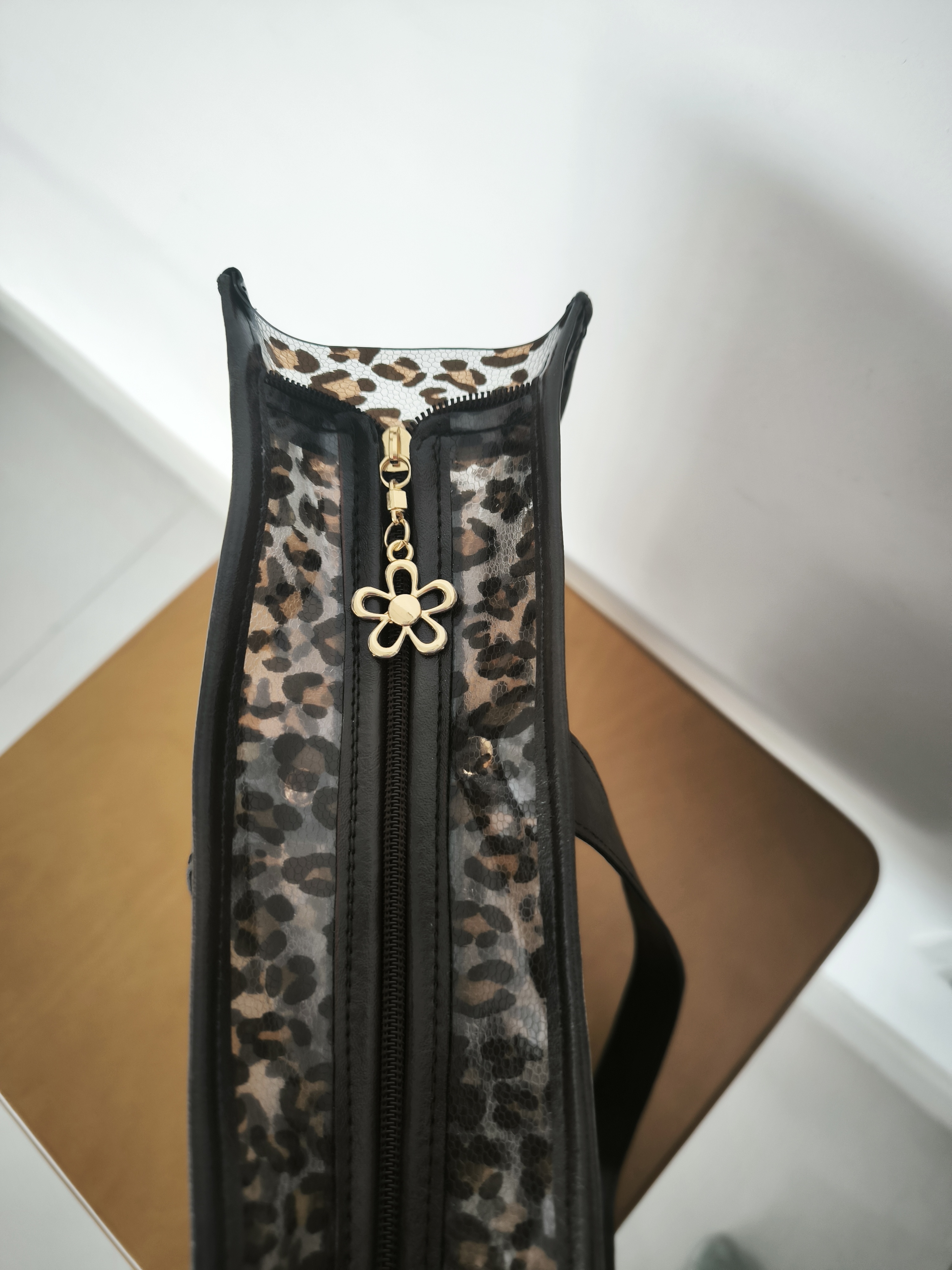 کیف طلقی پلنگی بسیار نرم و انعطاف پذیر داری زیپ و دسته و یه کیف کوچک چرم قهوه ای رنگ داخل کیف میباشد برای اینکه وسایلاتون پخش و پلا نشه کیف کوچک دارای استر اشبالت زرشکی بسیار زیبا اندازه ی کیف 40 در 38 میباشد اگر سفارش سایز کوچیک یا سایزهای مختلف خاستید تماس بگیرید قیمت هم تغییر میکند سفارش عمده هم پذیرفته میشود