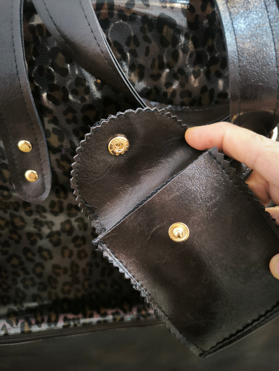 کاور بی نظیری از جنس چرم صنعتی قهوه ای سوخته با ترکیب طلق پلنگی محشر و خاص استر سوییت یراق ضد آب و رنگ ثابت دارای کیف کوچیک کارت و کلید دارای جیب جای کتاب بند روی دوش و دسته