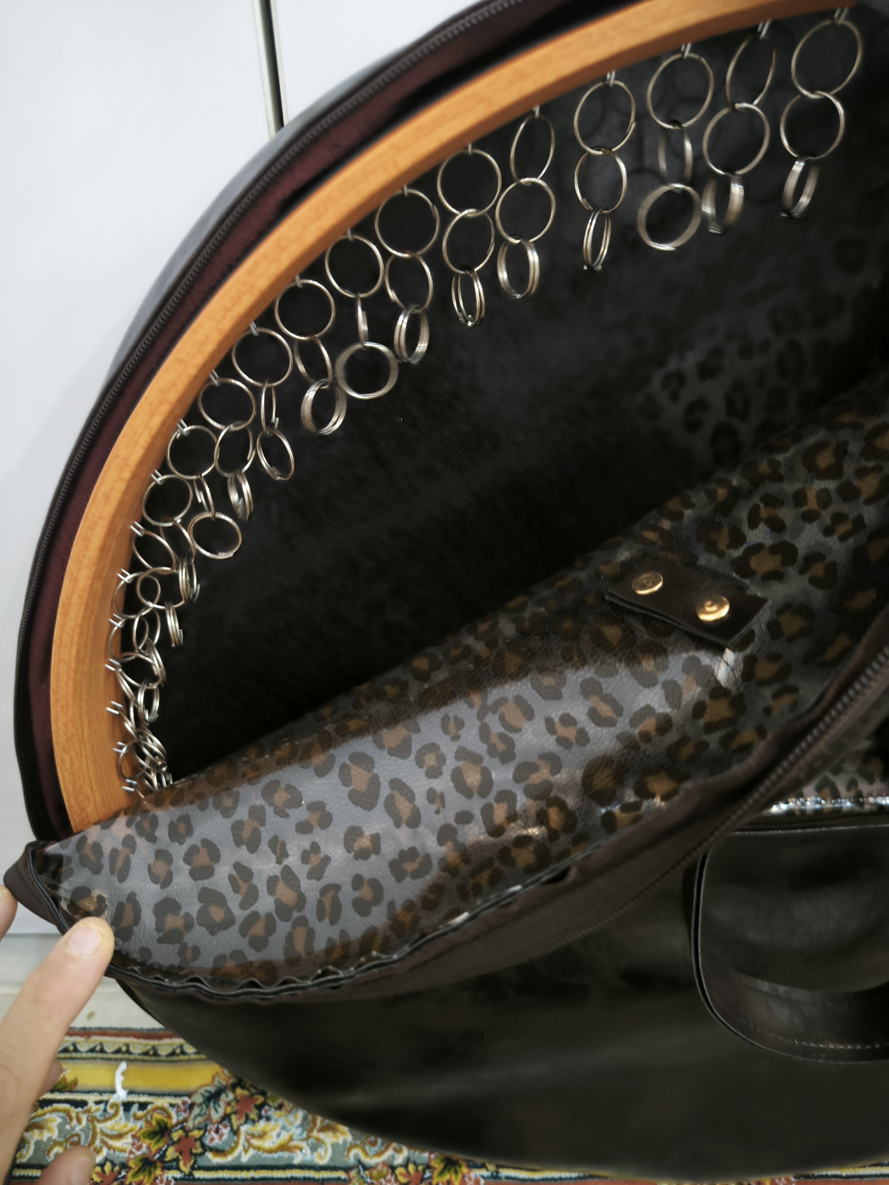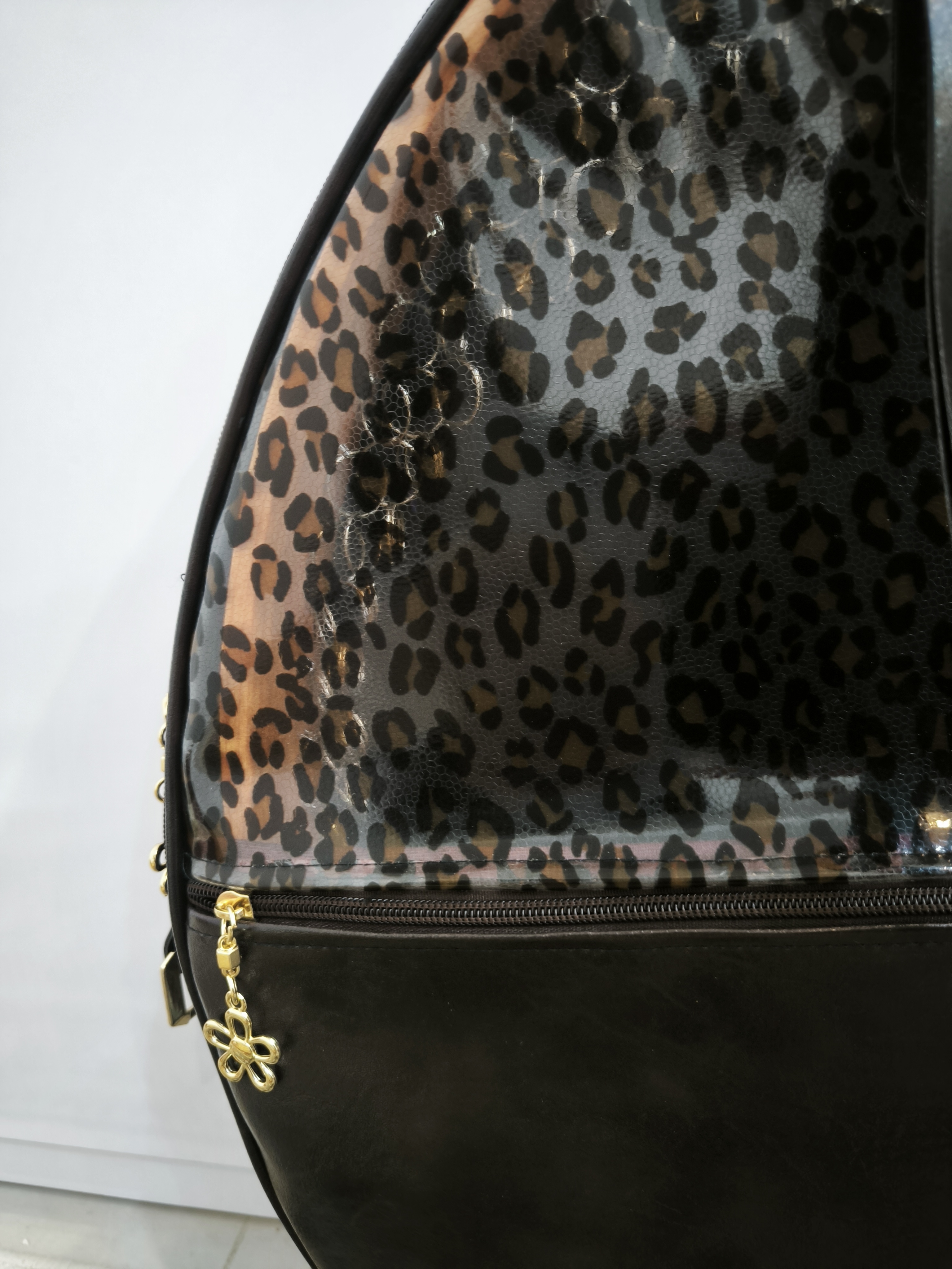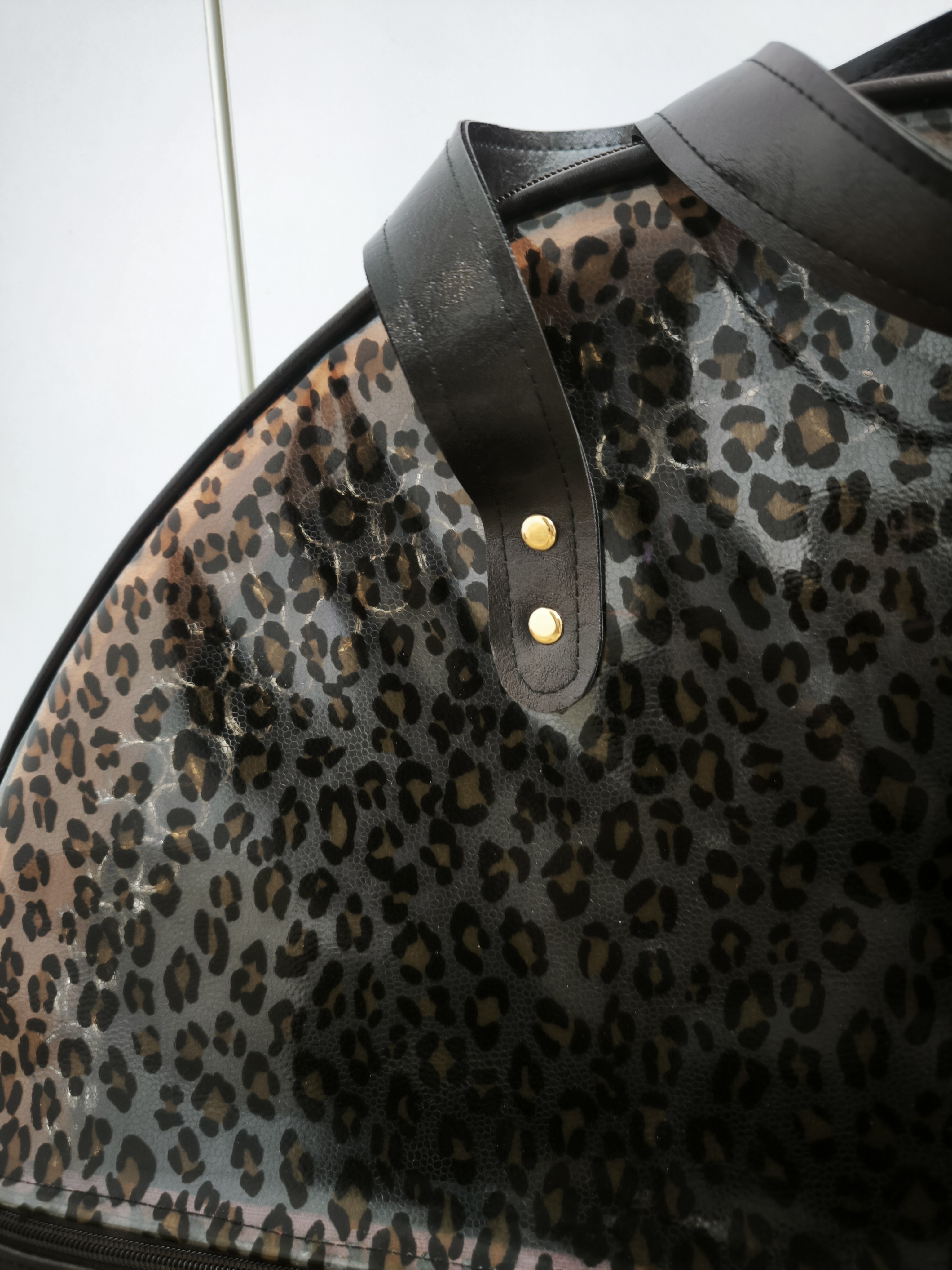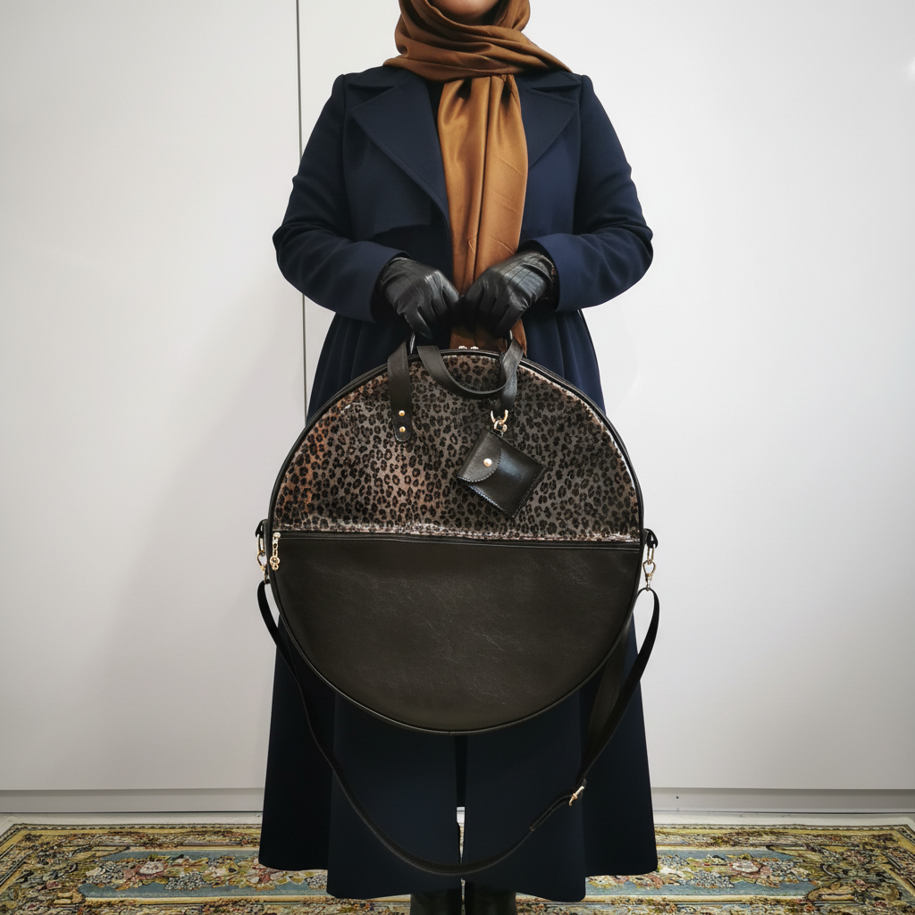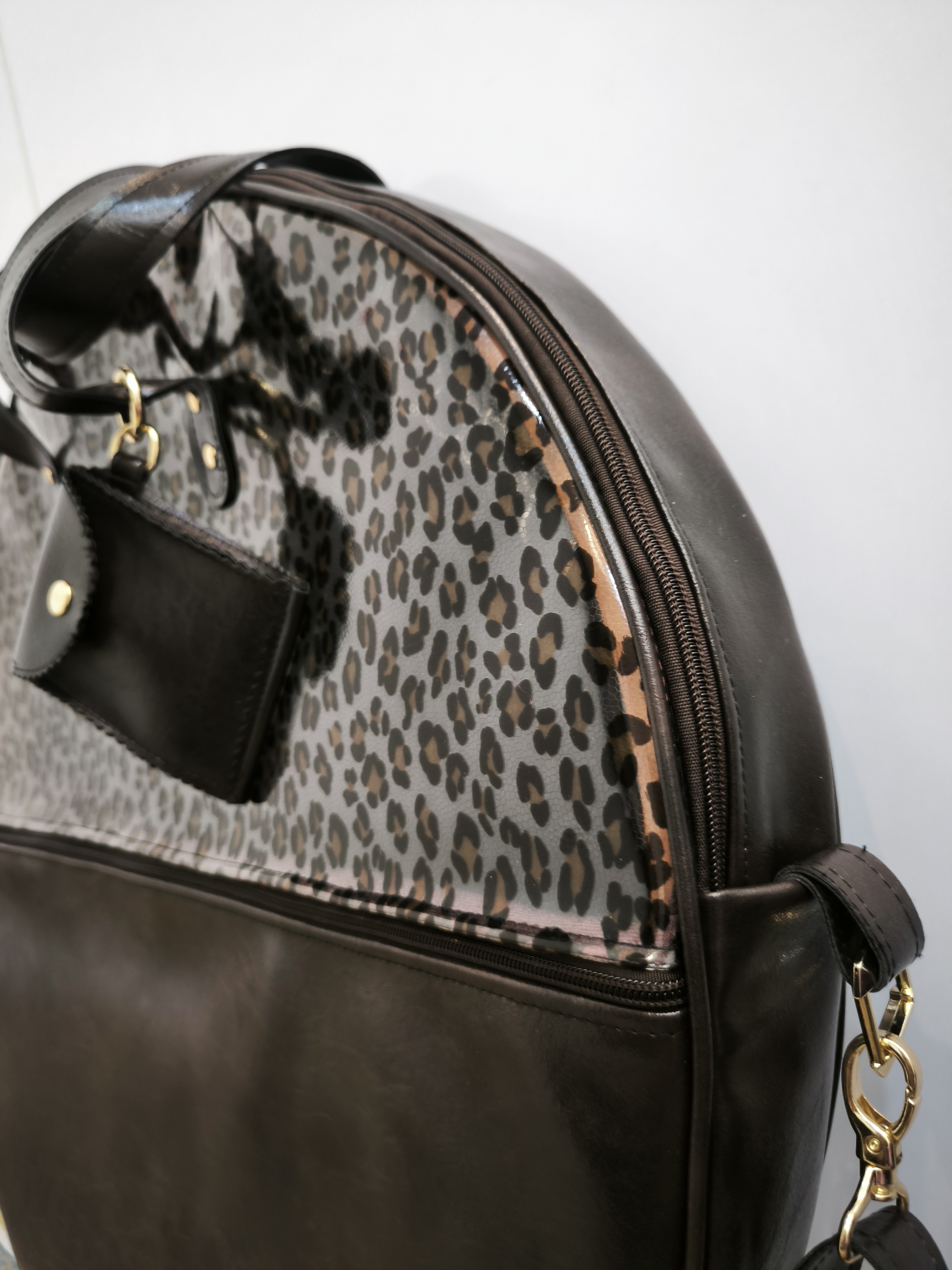 کاور بی نظیری از جنس چرم صنعتی قهوه ای سوخته با ترکیب طلق پلنگی محشر و خاص استر سوییت یراق ضد آب و رنگ ثابت دارای کیف کوچیک کارت و کلید دارای جیب جای کتاب بند روی دوش و دسته
