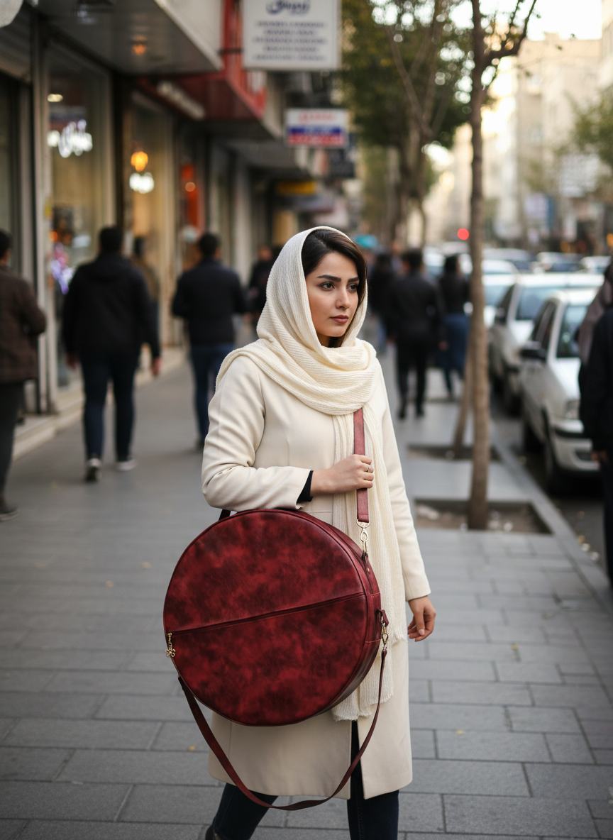 کاور زیبای دف با چرم صنعتی طرح ابرو بادی قرمز