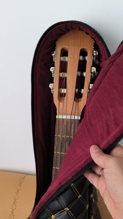 کاور گیتار جنس چرم مطلسه دوزی شد و آستر کشی تمیر آستر اشبالت