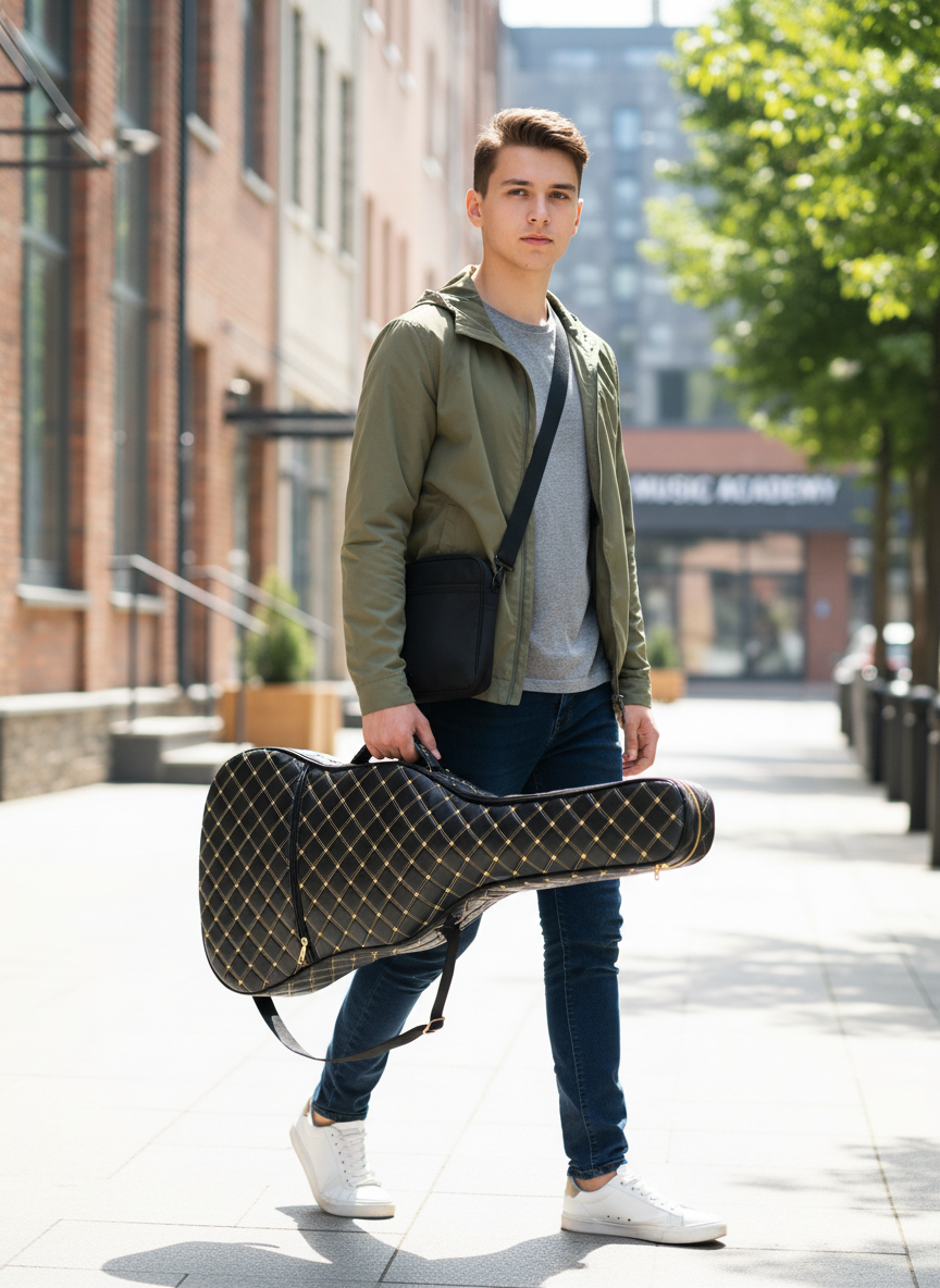 کاور گیتار جنس چرم مطلسه دوزی شد و آستر کشی تمیر آستر اشبالت